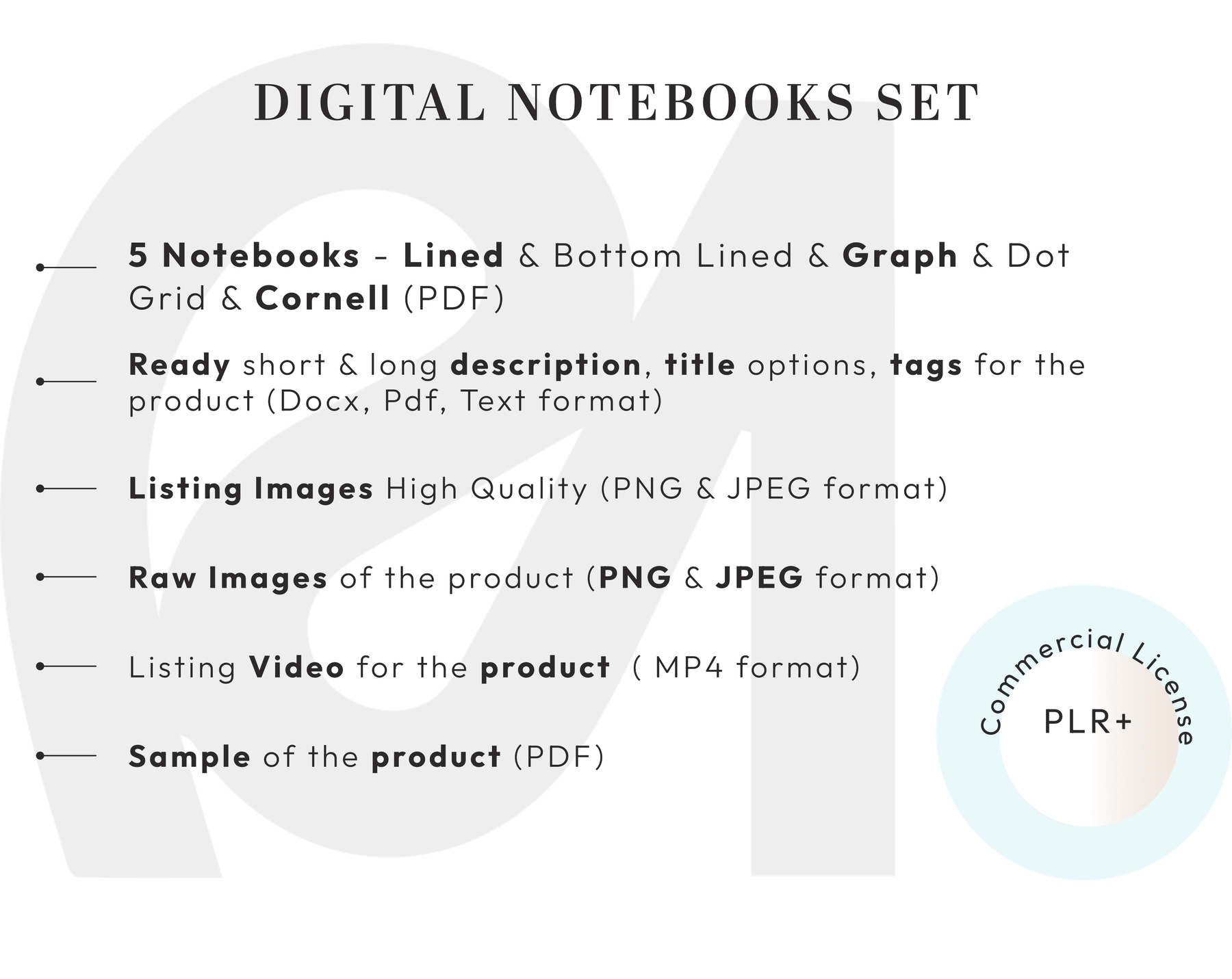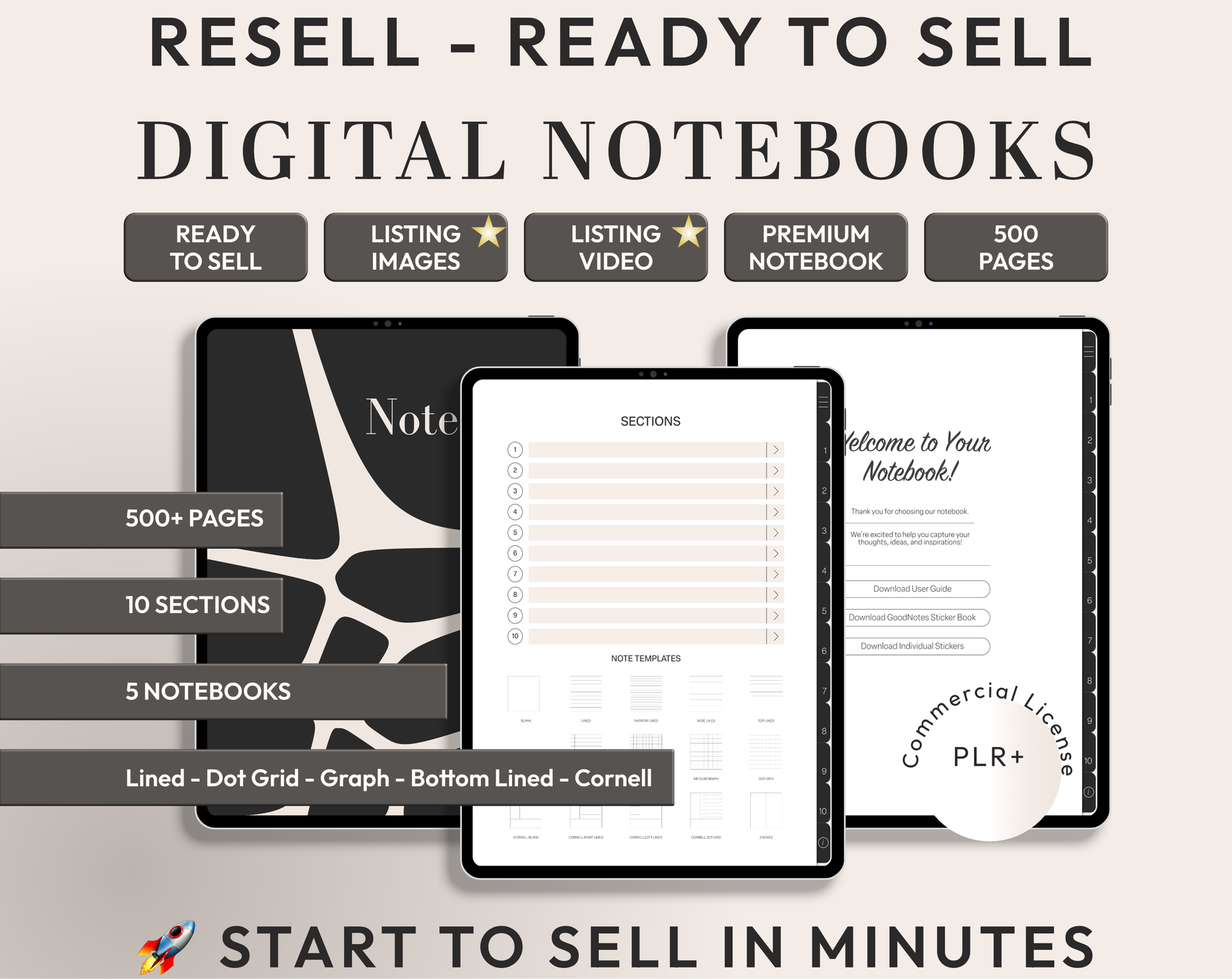 PLR Digital Products | Ready to Sell Premium Digital Notebooks with Resell Rights | Resell Kit with License, Images & Video