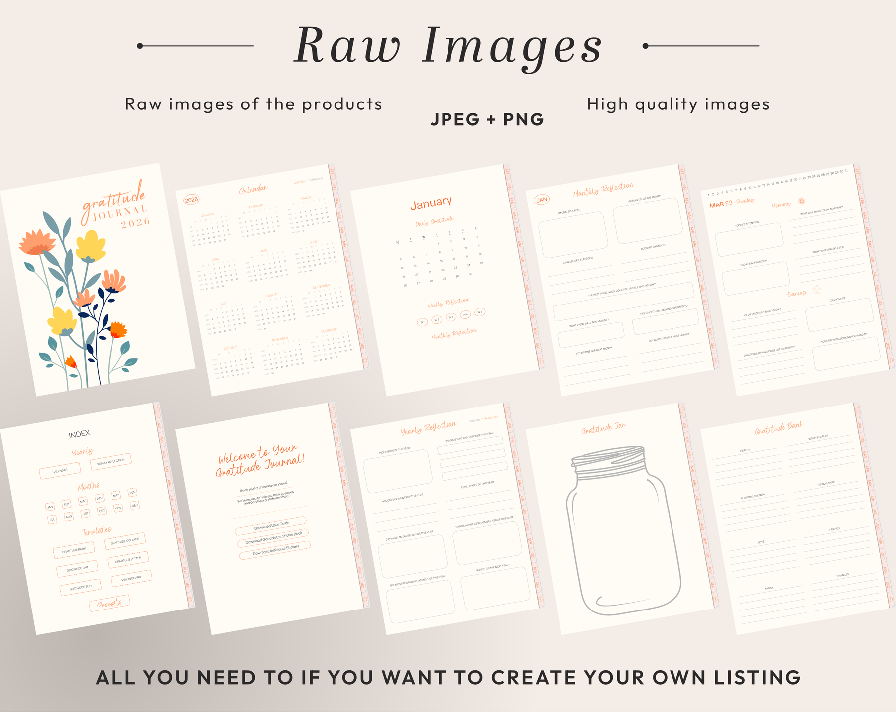 Start selling instantly with this 2026 + 2027 Digital Gratitude Journal PLR Bundle — your ready-made, fully editable resell package. Includes 2 premium journals with 450+ hyperlinked pages each, listing images, videos, and SEO materials. Perfect for resellers looking to expand their shop with high-quality, ready-to-sell digital products.