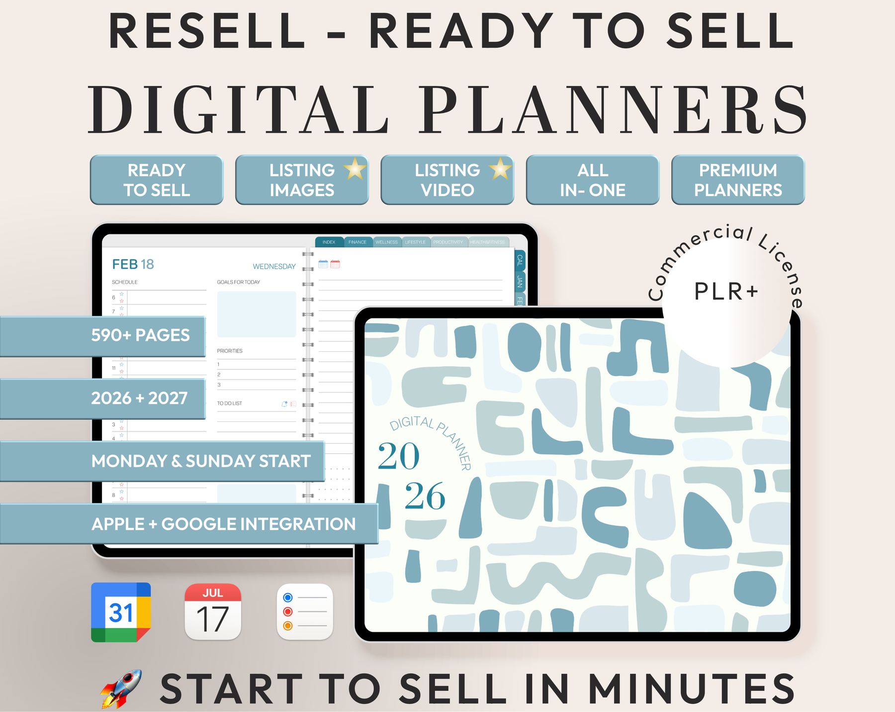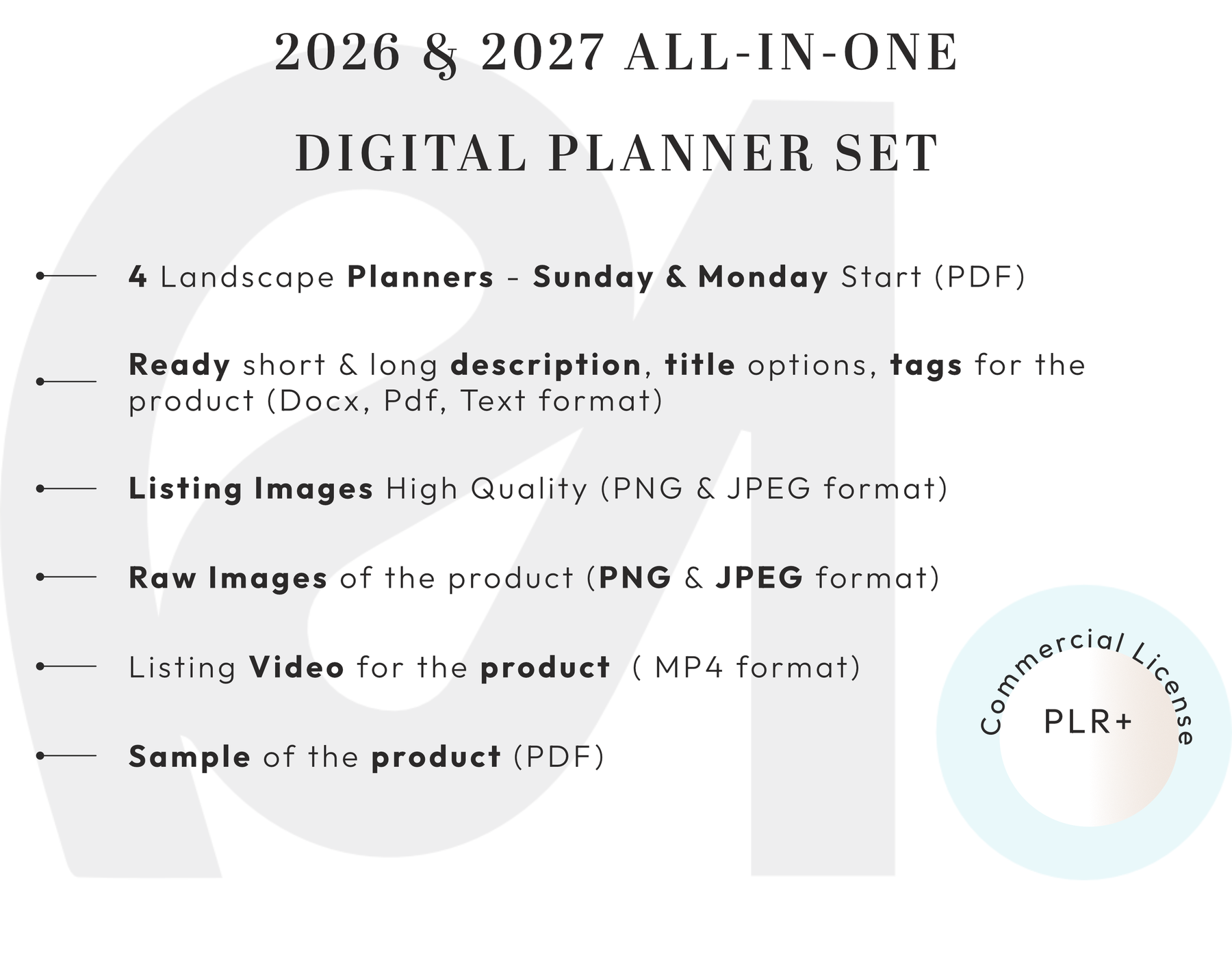 PLR Digital Products | Ready to Sell 2026 + 2027 Premium Digital Planners with Resell Rights | Pack with Listing Materials Included